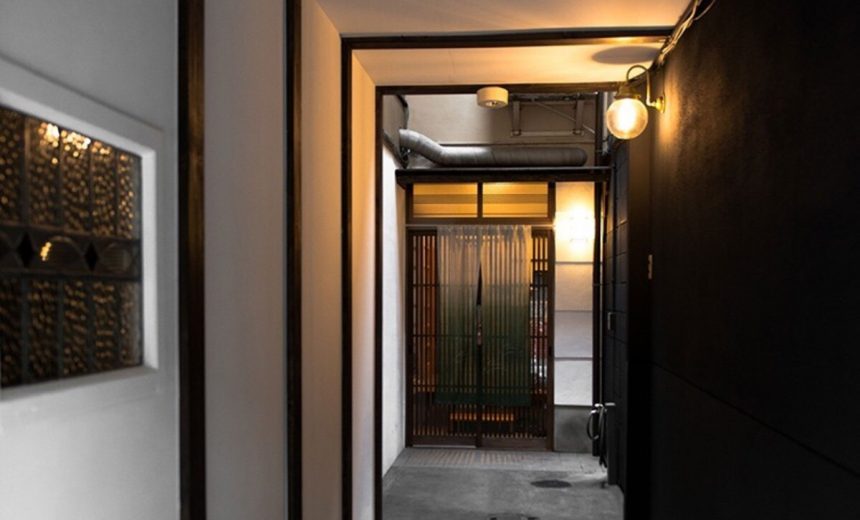 境町五条に佇む築90年以上の京町家。美しくリノベートされ、奥へ奥へと続く伝統的な空間となっている。